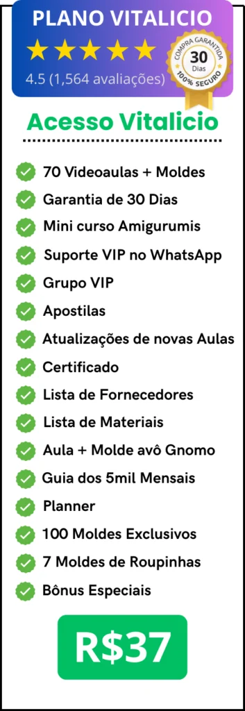 Fazendo sua inscrição no curso Bonecas de pano, você receberá como bônus um mini curso de Amigurumis Excluisvos